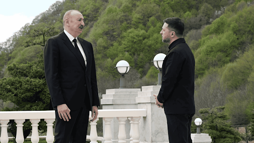Ukrayna prezidenti Volodimir Zelenski aprelin 25-də gözlənilmədən Azərbaycana səfər edib. İlham Əliyevlə görüş Qəbələ şəhərində baş tutub.Ukrayna prezidentini geniş tərkibli nümayəndə heyəti, o cümlədən xarici işlər naziri müşayiət edib. Səfərin yekunlarına əsasən iki ölkə arasında altı sənəd imzalanıb. Azərbaycan tərəfi Ukraynaya humanitar yardım kimi beş elektrobus təqdim edib. Eyni zamanda dron əleyhinə texnologiyalar və müdafiə sənayesi məhsullarının birgə istehsalı sahəsində mövcud və perspektiv əməkdaşlıq məsələləri müzakirə olunub.